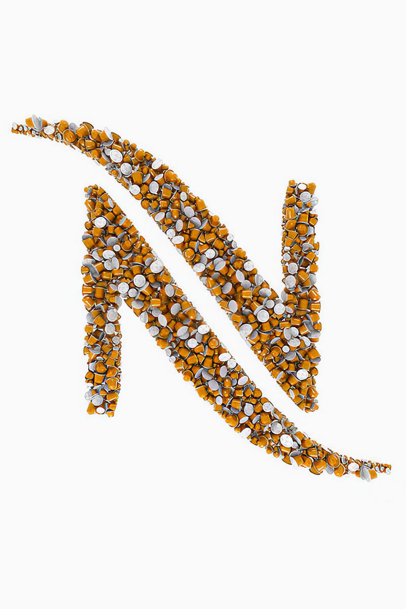 This project is a perfect example of how to transform ordinary coffee capsules into a stunning visual display. Nescafe’s colorful capsules are artfully arranged to form the logo, presenting the brand’s identity in a uniquely creative way. This approach offers a fresh way to display a brand’s visual identity across various platforms, including websites, e-commerce, market displays, and social media. The simplicity of the design, combined with the effectiveness of the message, is enhanced by 3D design techniques and animated elements, making it both visually appealing and memorable.